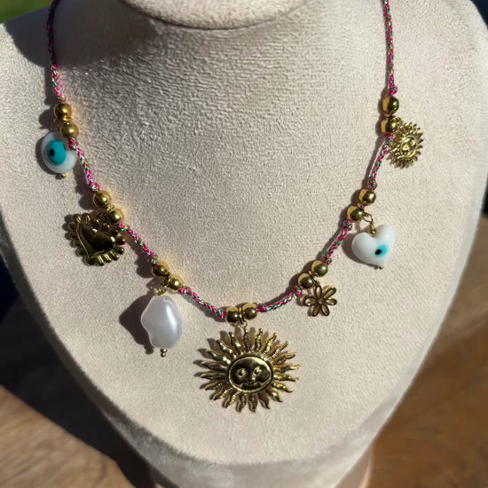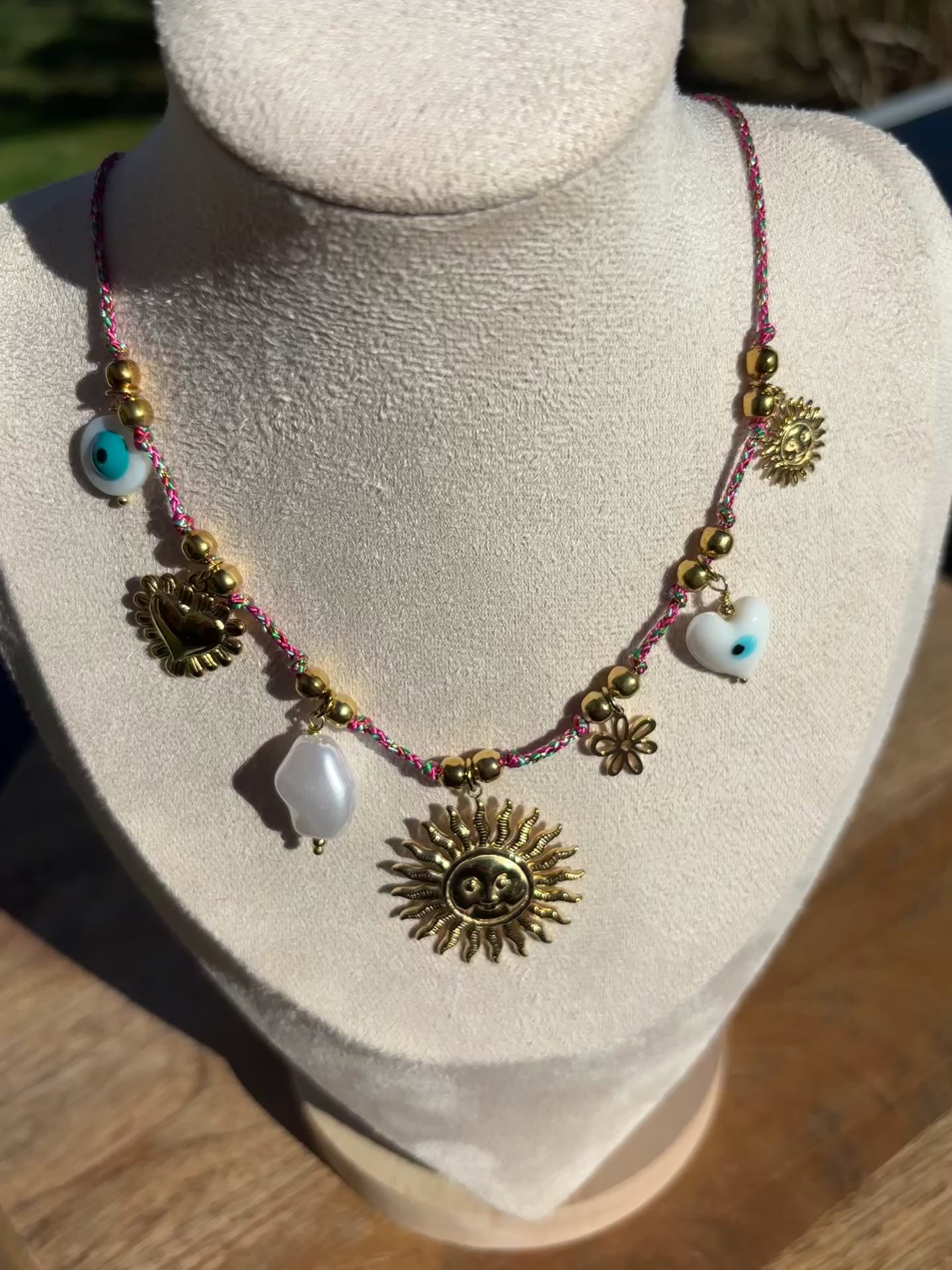 - Charms : soleil, coeur, mauvais oeil, fleur, perle blanche
