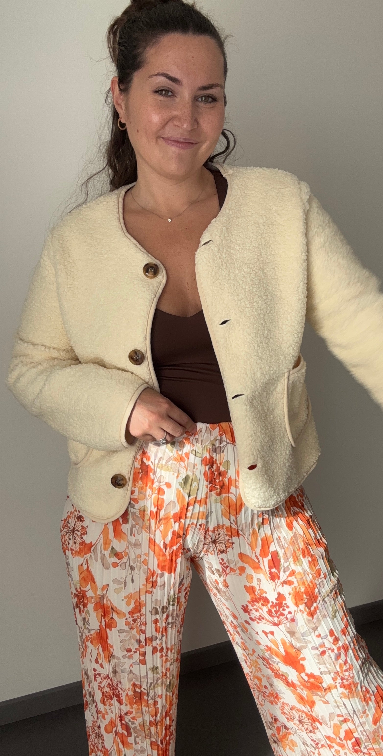 - Pantalon plissé à motifs fleuri orange
