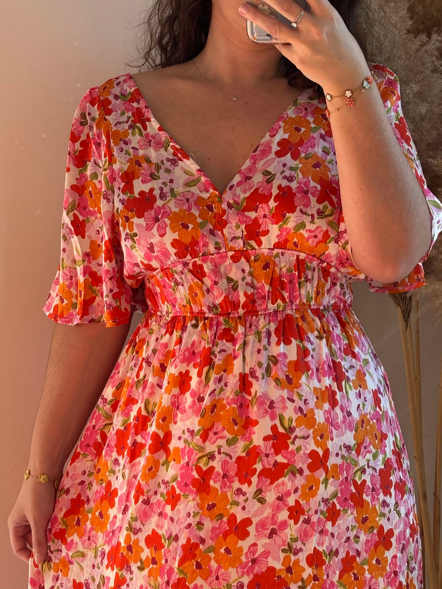 Un vent de fraîcheur souffle sur ton dressing avec cette robe longue à l’imprimé floral éclatant, pensée pour sublimer toutes les silhouettes. Son tissu fluide et léger glisse sur la peau avec douceur, sans coller, tandis que sa taille légèrement élastiquée assure confort et maintien.